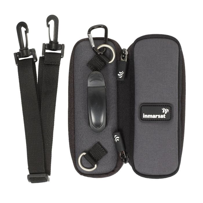Genuine Inmarsat branded carry case with two-way zip and multiple attachment system.
